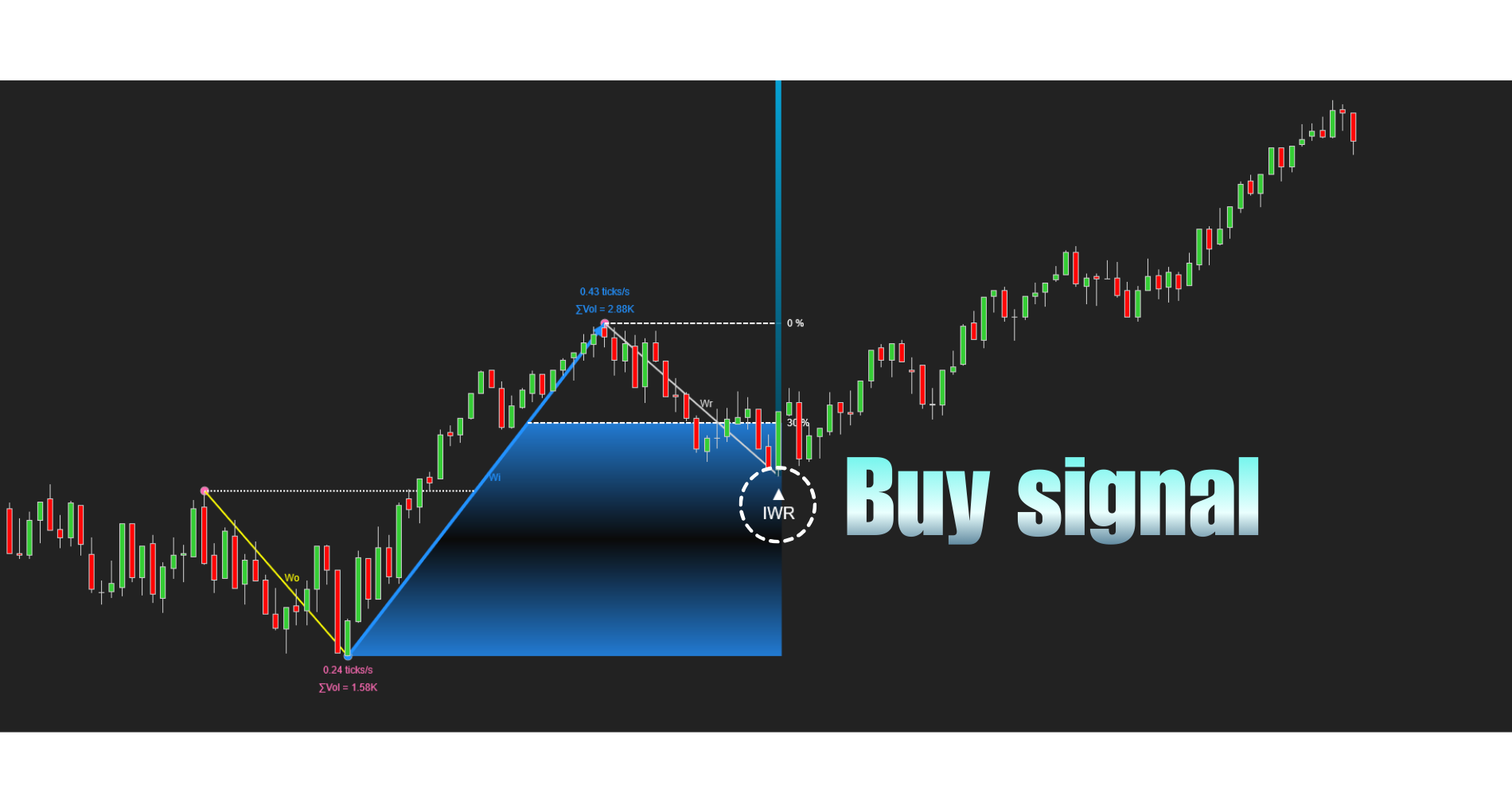 Unlike traditional wave-based indicators that look at price in isolation, ImpulseWave Radar references the prior wave (W0) to validate whether Wi is a true surge. This proprietary logic ensures weak or misleading moves are filtered out, while the strongest waves are detected early, before most traders even see them.The science behind it comes from Elliott Wave principles: wave 3 in a series is typically the strongest. The Dynamic 3-Wave Analyzer applies this concept to real-time market data, combining price structure + volume + speed to create signals with greater reliability than standard momentum or volume indicators.This is how ImpulseWave Radar identifies potential buy signals: