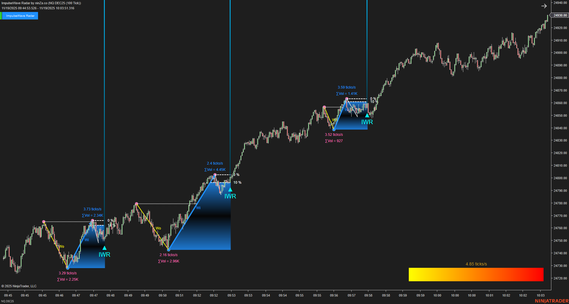 Check out the latest 1-month & 2-month backtest results of ImpulseWave Radar on the 100-tick NQ chart: