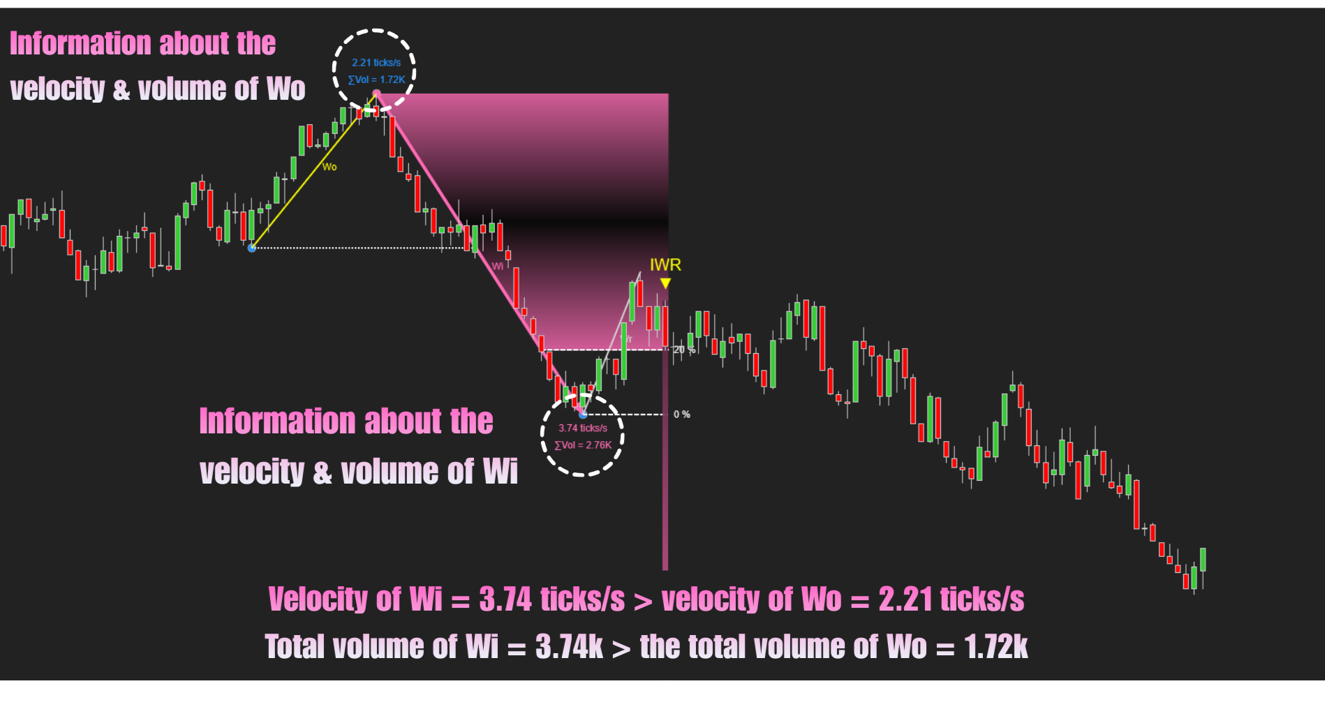 The indicator compares the speed (ticks/s) and total volume of the impulse wave (Wi) with the prior base wave (Wo), only validating Wi when it moves faster and with higher volume.This ensures the wave has real momentum, not just a minor fluctuation.→ The indicator helps you identify genuine impulse waves and position yourself at the very start of explosive moves, allowing you to capture high-reward opportunities before the price accelerates.
