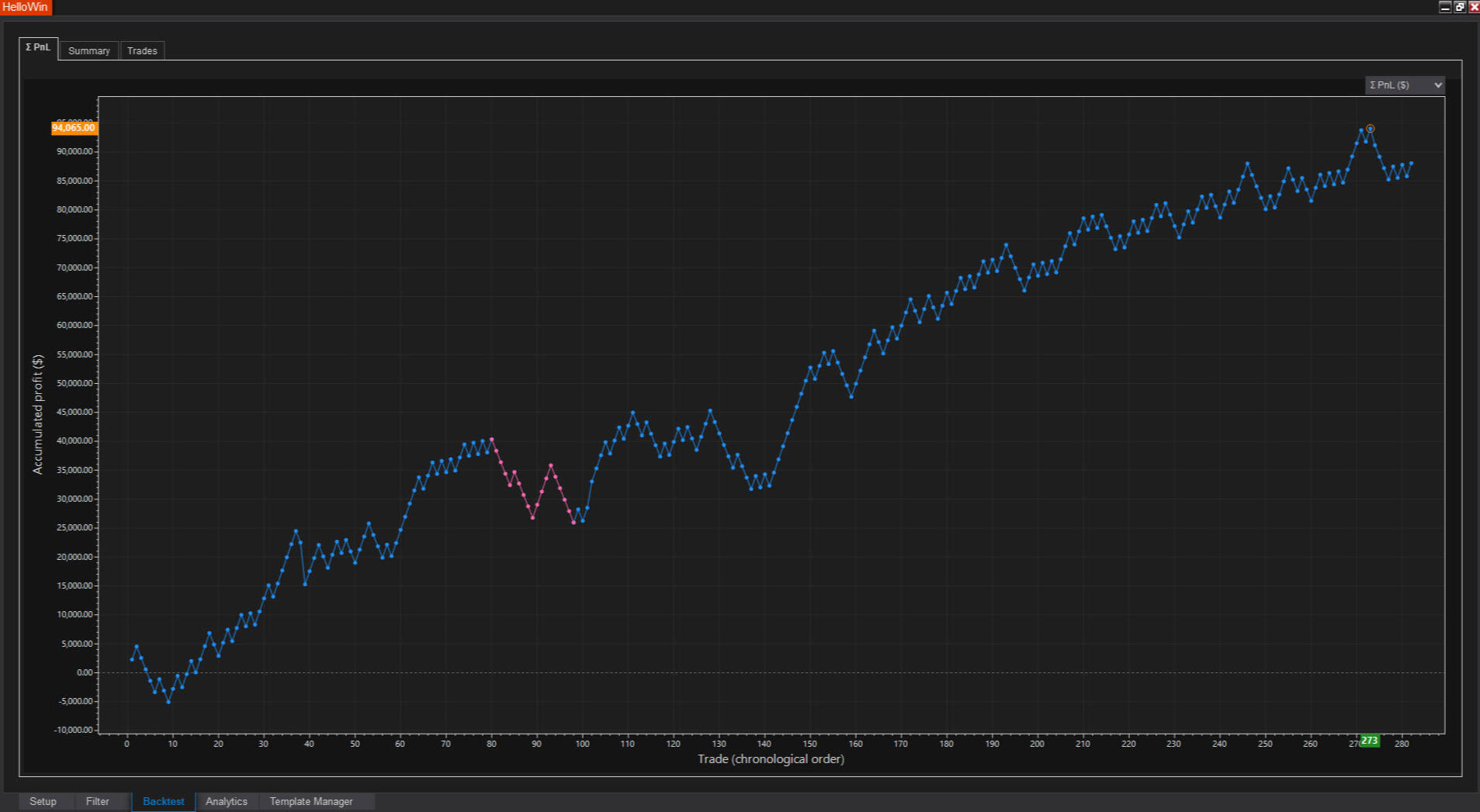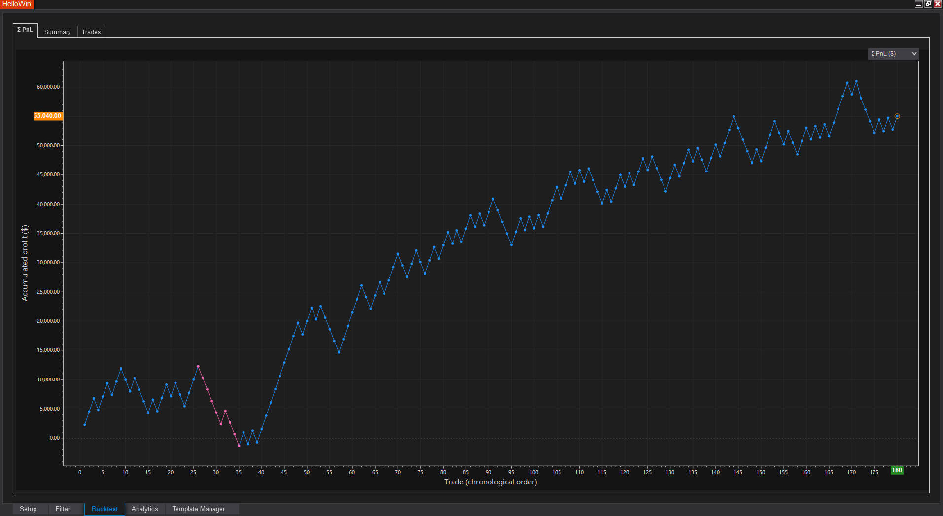Check out the latest 2-month backtest results of ImpulseWave Radar on the 100-tick YM chart: